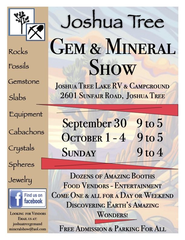 Join us at our new location, Joshua Tree Lake RV & Campground, for an unforgettable gem and mineral experience. Explore incredible vendors showcasing their unique collections.